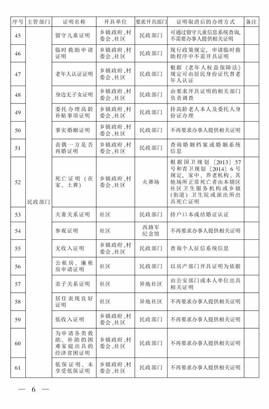 对取消的证明事项,各级政府及有关部门要抓紧修订相关文件、调整办事方式,并通过办事大厅告知、门户网站公布等方式及时公布新的办事流程,方便企业和群众办事。对可用现有资料替代的证明事项,各级政府部门要加强配合、信息共享、互认互通,严格按照《青海省人民政府决定取消的基层开具涉及群众办事创业证明事项目录(177项)》(见附件)确定的方式办理,不得推诿扯皮,推脱责任。